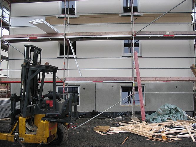 Die Anlieferung der Rigipsplatten ist erst mal gescheitert - zuerst muß das Gerüst weg!