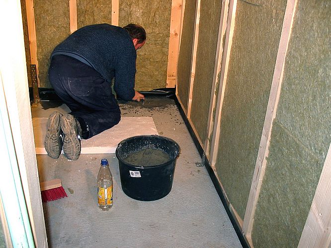 Endlich mal über 0 Grad - da musste die Untermörtelung der Wände im EG gemacht werden