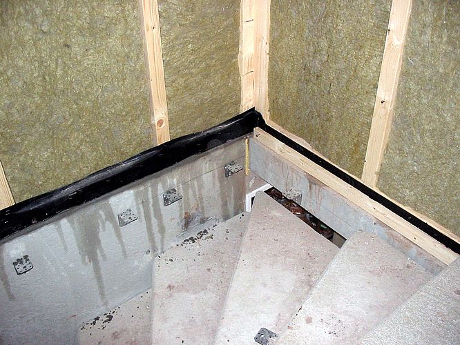 Rechts sieht man noch die Schalung für die Treppenhauswand