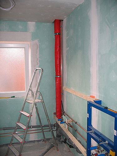 Die Weiterführung der Rohre zum OG ist fast abgeschlossen