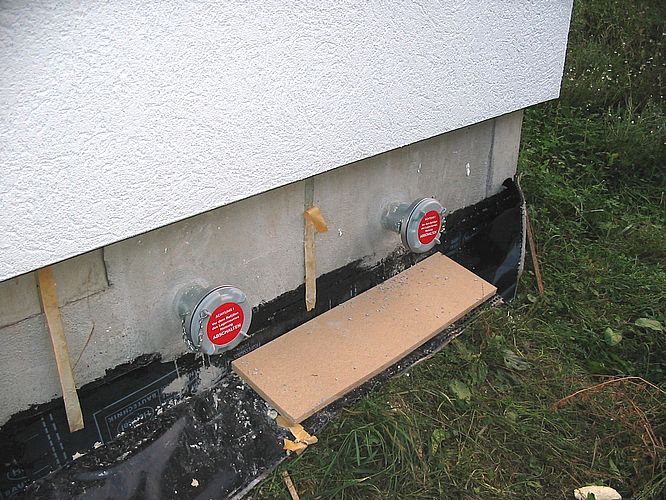 Die beiden Stutzen mit Kupplung von der Außenseite