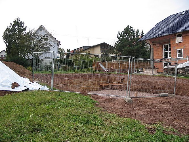 Links lagert der abgedeckte Aushub zum späteren Verfüllen