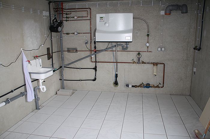Im Keller warten die Randfliesen auf den Kleber
